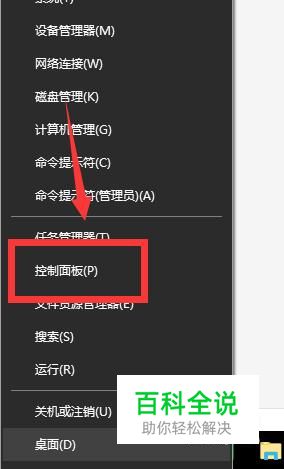右击开始菜单,点击列表中的控制面板选项。因为是win10系统,所以打开控制面板可以直接右击开始菜单。