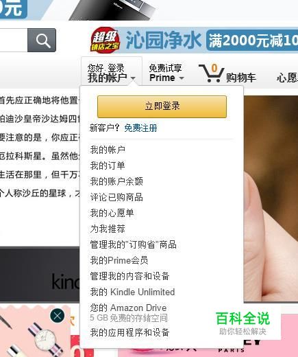 首先你需要获知你的kindle邮箱是什么。打开亚马逊官网,登陆你的亚马逊账户。