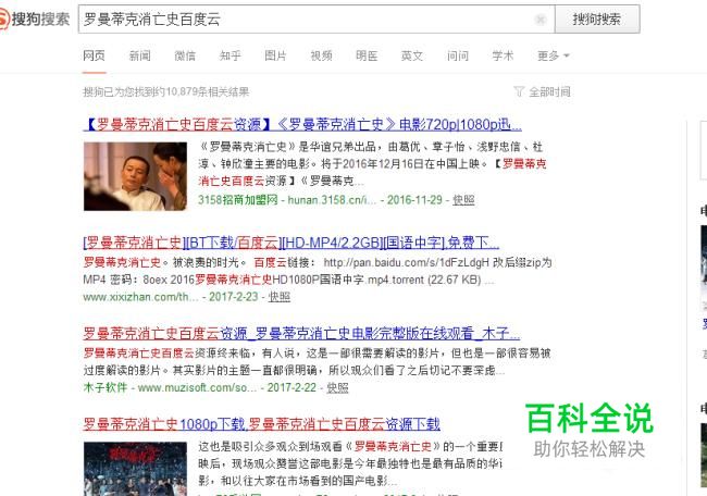 点开搜狗搜索你想看的电影,比如罗曼蒂克消亡史,然后加上网盘资源几个字