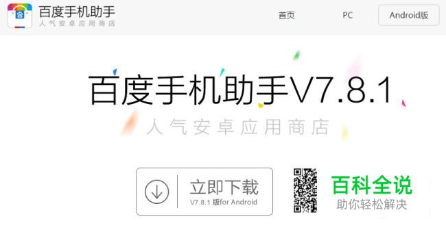 搜索百度手机助手,然后进入官网。点击下载,也可以扫描二维码下载。