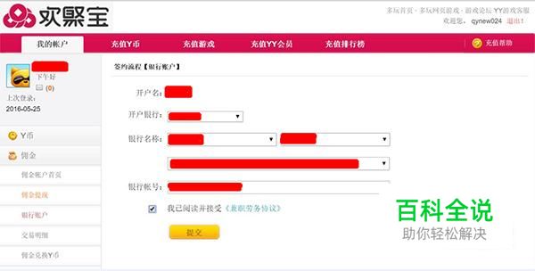 输入银行名称、开户支行及账号,勾选已阅读接受协议,点击提交便完成签约。