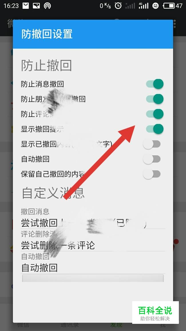 可以对撤回的内容进行具体设置,设计完成后需要重启手机才可以生效。