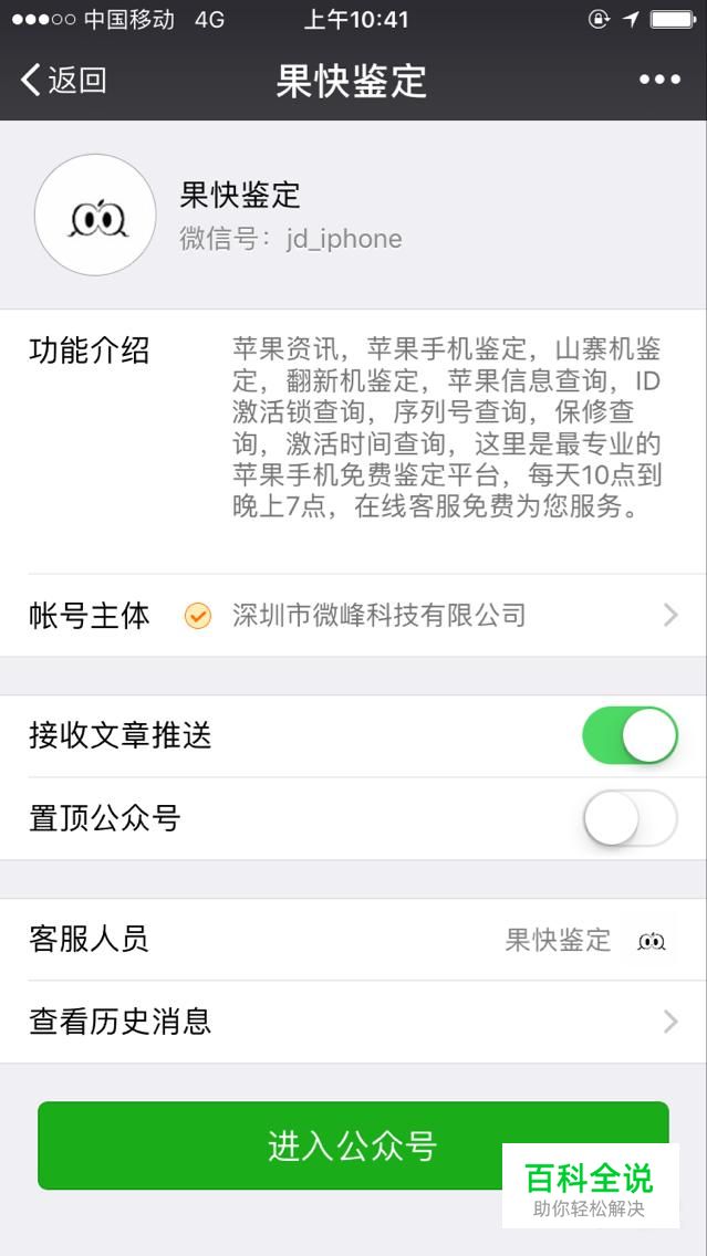 以“果快鉴定”为例,先关注公众号“果快鉴定”,然后输入手机的序列号。