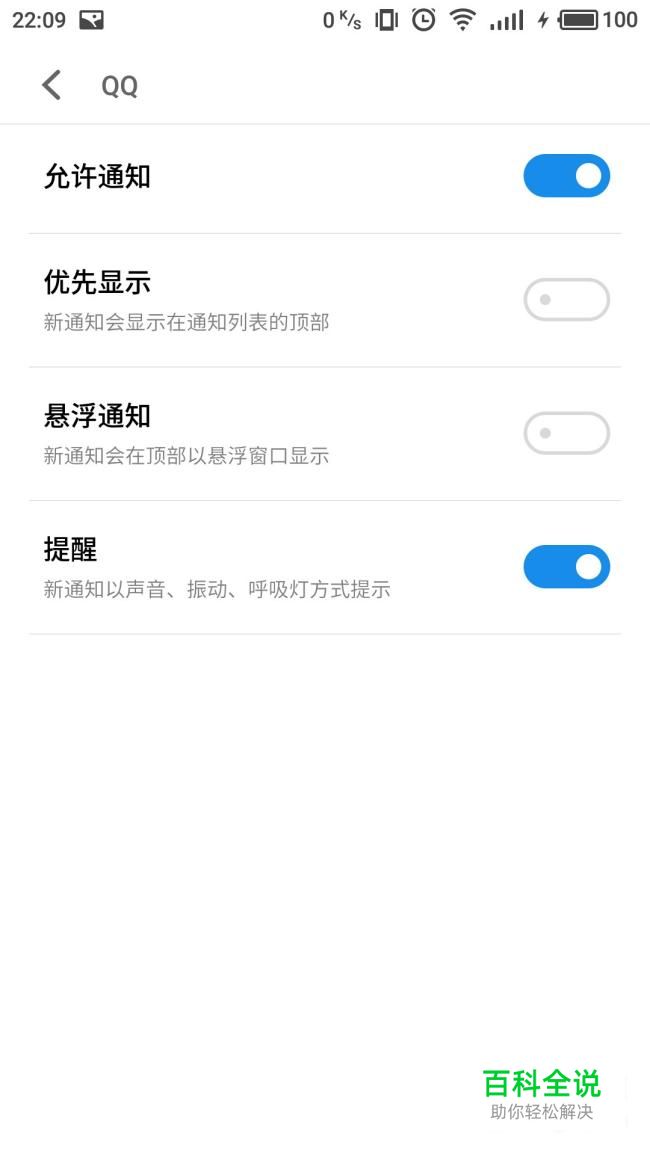 在通知设置中,选择“QQ”,然后将允许通知滑块开启。