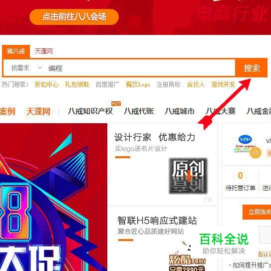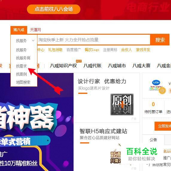 在【猪八戒】搜索项里选择【找需求】