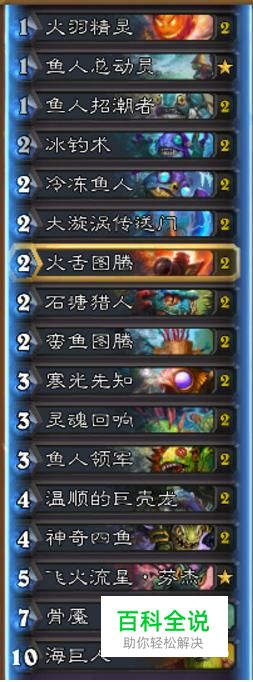 蛮鱼图腾是比较烦人的,因为每回合都会召唤一个11,而且3血在12费的时候也没有那么好解,遇到圣骑士,牧师等职业基本能召唤出好几个回合。