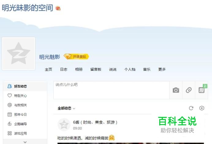 打开自己的QQ空间主页,注意不是个人中心,是有好友动态显示的页面。