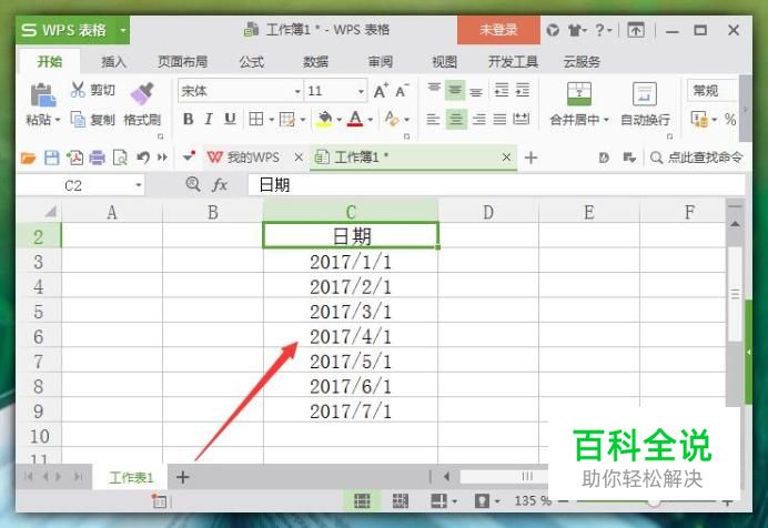 进入表格主界面后,在单元格中输入一些日期为例说明,然后鼠标框选出这些单元格区域,如图所示: