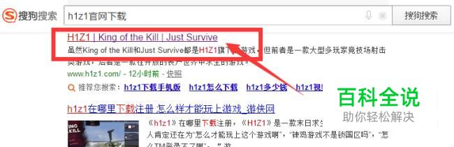 之后,跳转到了搜索结果。我们点击h1z1官网的链接。