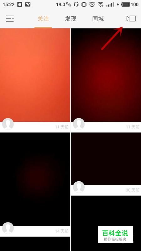 进入快手APP主界面,选择右上角“相机”