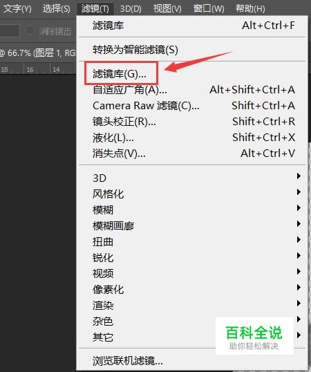 使用减淡工具,调节人物周边的边缘,再在滤镜菜单下找到滤镜库选项,如图所示: