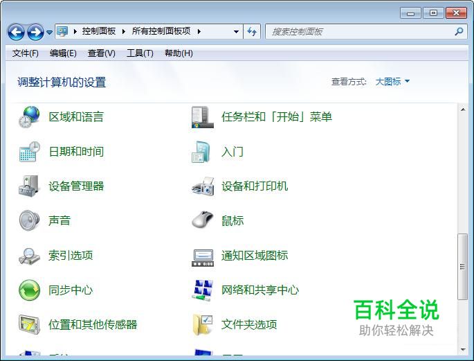 进入控制面板界面,查看方式大图标,点击“设备管理器”
