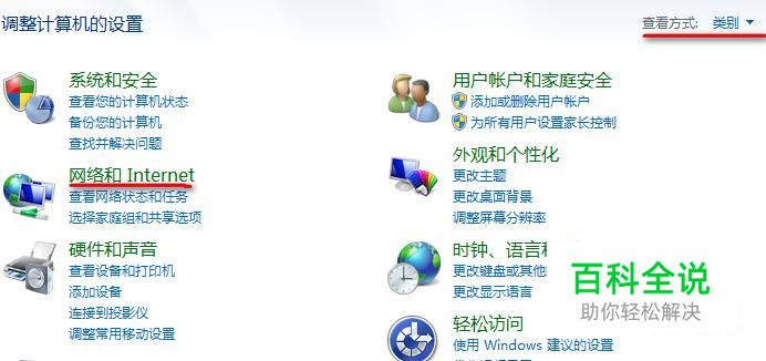 选择查看方式“类别”找到“网络和Internet”点击进入