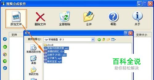废话少说,直切主题。打开视频合并软件,如下图,点击左上方工具栏上“添加文件”按钮,浏览本地“打开”需要合成的视频文件,可以同一格式,也可以不同格式的。我这里以不同格式的为例吧,如avi、mp4、flv、mkv等格式。