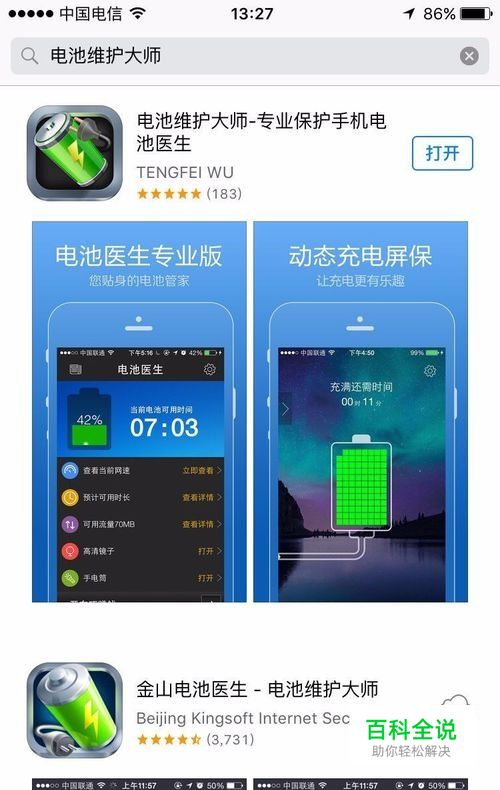 打开苹果商店App Store,搜索:电池维护大师