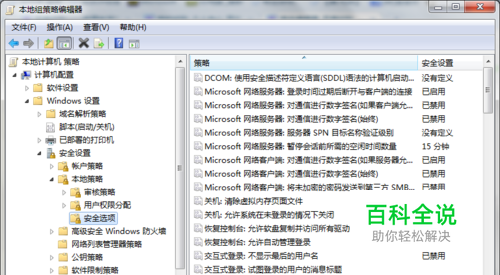 一、使用组合键Win+R键打开运行对话框,然后在深度win7运行窗口中输入gpedit.msc命令,打开本地组策略编辑器。接着在本地组策略编辑器中,依次展开“计算机配置”-“Windows设置”-“安全设置”-“本地策略”-“安全选项”。