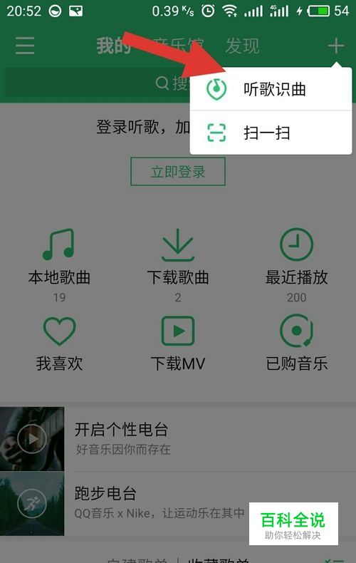 点开右上角+号 在点开听歌识曲