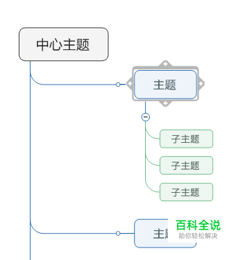 2.点击树状导图,然后创建导图,会出现中心主题,我们可以使用快捷键新建主题。 注释:主题左边+号是:插入上级主题(Ctrl+Shift+Insert) 右边+号是:插入子主题(Insert,或者Ctrl+Enter) 上边+号是:在前面添加主题(Shift+Enter) 下边+号是:添加主题(Enter)