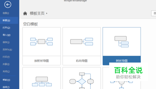 1.首先,打开MindManager,点击左上角,文件—>新建,我们可以看到有很多的模板可供选择,我们可以选择树状图。