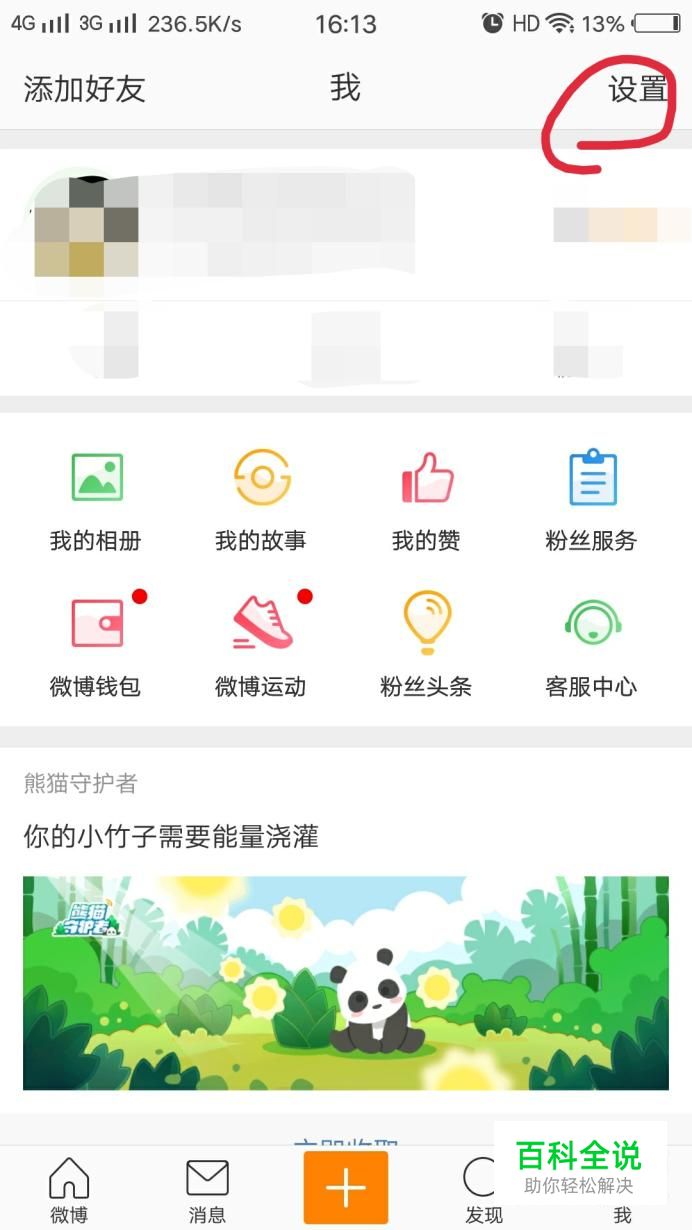 打开微博,点击右下角的“我”,进入到个人信息这个界面,点击右上角的“设置”。