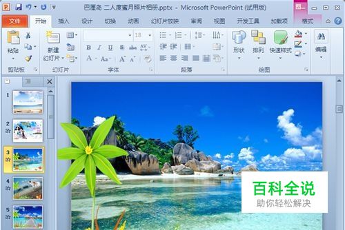 首先制作一个漂亮的照片PPT幻灯片。 可以到网络下载免费的PPT模板,动态的更好看。然后在现成模板上插入自己的照片。