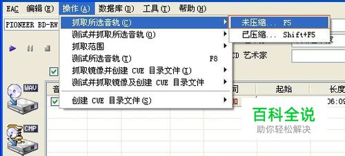 先将CD碟放入光驱中,打开软件,软件会自动读取CD,如果你光盘有多个音轨的话,可以勾选需要抓取的音轨。执行“操作”-“抓取所选音轨”-“未压缩”