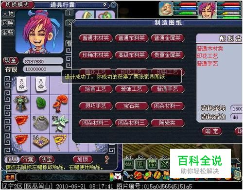 p; 我的巧匠技能70,我的体力主要用来开家具图纸上了,所以,除了师门外,家具还有很多剩余。可以放到仓库里,在有人高价世界上喊话时候,出手,不浪费时间摆摊,并且可以很方便的赚他一笔,单拿我们区为例,一级家具大约3万3-3万5,二级家具除了比较稀少的之外,70级可以做的基本的价格在4万-5万,如果有人急着收,价格会高一些,如果你平时有积攒,那么卖出,如果没有库存,那么可以先联系他,之后去CS做,也是来得及的! 下面说一下窍门: 首先把技能设置成70以内做家具,我的定位就是做一级家具,为什么不做二级家具呢?首先二级家具的成功率我真的不敢恭维,都不知道多少人在世界在论坛死命刷满活做几张,当然一级也差不多,相对高一些。