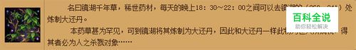 活动详情: 草药每天的18:30会固定的出现在镜湖范围内。此时,玩家们可以赶往镜湖采集镜湖千年草,草药采集不需要采集技能,大家注意:如果到19:00还没有人采集仙草,那么此仙草将会消失。