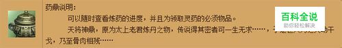 当您开始正式炼制大还丹的时候,危险也随之与您越来越近,除非有人保护,否则您很难完成这个艰巨的任务,为什么呢?因为系统会通知游戏中所有的玩家,您开始炼丹了!这是最为危险的时刻,当您炼丹时不但有人会攻击您,还会攻击药鼎!因为药鼎破裂后,药草会重新在镜湖范围内生出!所以,多叫帮手来保护你吧! 最后,炼制出大还丹,再点击药鼎就可以领取它了。