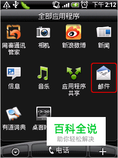 我来向大家介绍如何使用Android系统上的邮件应用程序Mail创建163邮箱帐户,这里以HTC手机为例(其余android系统手机除了界面略有区别外,操作基本类似):