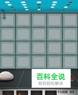 在100层电梯第六十三关中,电梯门前有一块大大的石头,左右两边各有一个红色的按钮,顶部有许多灯。