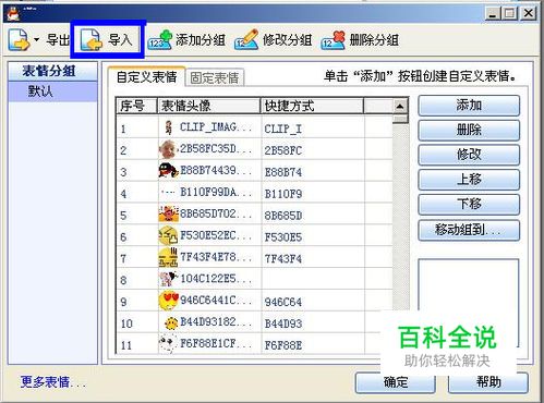 第四步:在表情管理里面,选中“导入”,如下图: