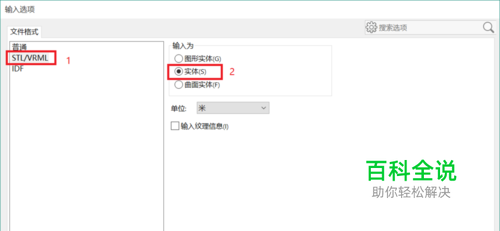 打开SolidWorks并打开文件选项,在文件类型中选择stl格式,然后点击选项