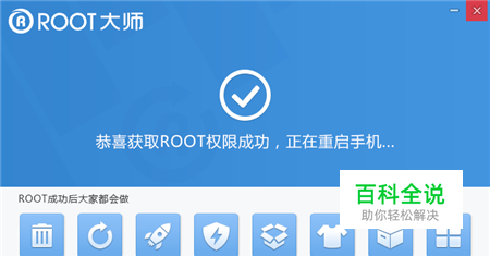 一般不超过5分钟,就会显示“ROOT权限已获取”,查看手机上多了一个root大师手机版软件就表示手机已经成功ROOT了,想ROOT的用户快自己试试吧。