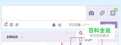 如果你是正要发表的说说,可在你发表的说说右下方可以清晰见到编者圈出的三个红框,共有3个选项,如果可以根据您的情况更改。