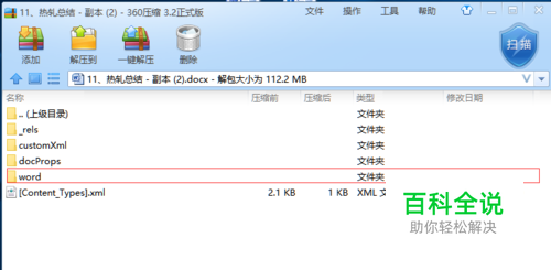 首先用压缩软件打开word文档(直接打开,而不是先压缩后打开),找到文件夹word下的document.xml文件,用Firstobject XML editor软件将其打开。