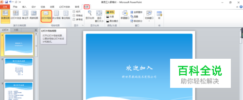 在工具栏中找到“视图”中的“幻灯片母版”,然后单击一下。