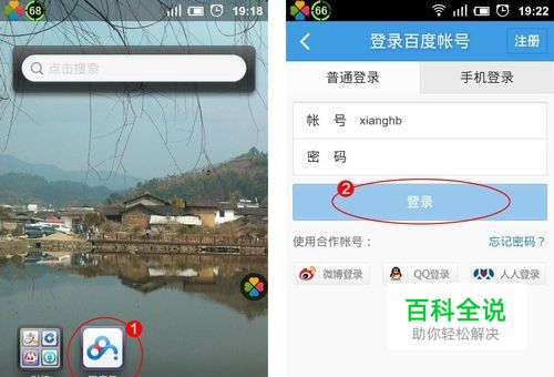 打开APP,输入账号,密码登录应用。如果没有百度账号可点右上角的“注册”,或是用最下方的合作账号登录。