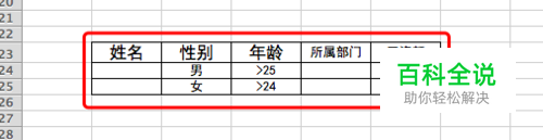 这里以员工工资数据表为例,筛选年龄大于25岁男同事和年龄大于24岁女同事。