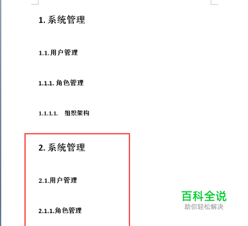 2.1.用户管理 设置列表参数:将格式应用于选择‘第一级’对应起始编号为‘2’如图