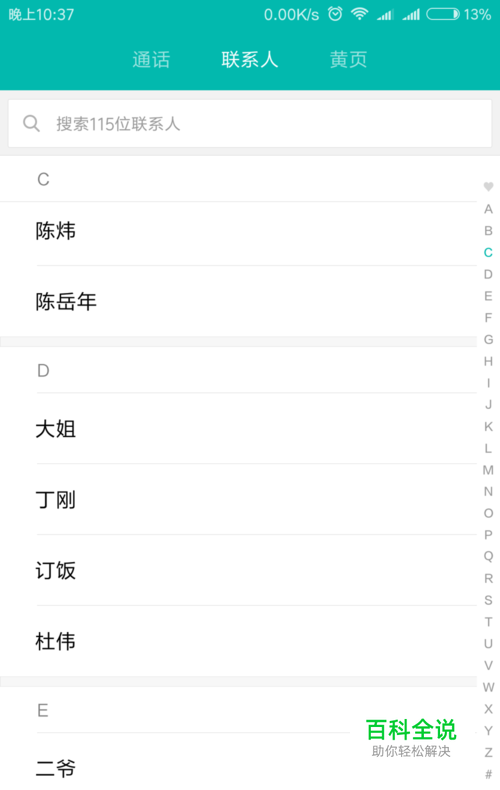 首先我们可以打开手机通讯录会看到许多联系人,包括自己的亲人同事,大学同学,亲戚朋友各种各样的人的电话号码,顺便教大家一个快速经常联系的人的电话号码,你在编辑联系人名称前写一个小写字母a,这样就可以快速找到。
