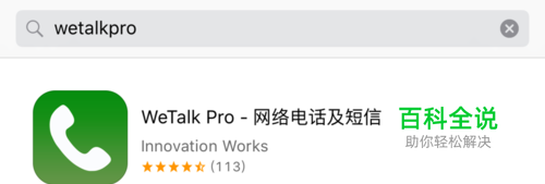 在开始以前,需要前往 App Store 中下载第三方应用软件,因为苹果本身的电话应用是不支持对电话进行录音的。可以在 App Store 中搜索“Wetalkpro ”关键字,这里就以电话录音这款软件为例,介绍下操作的方法。