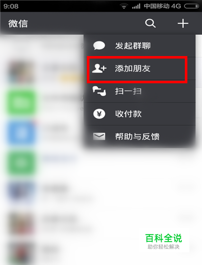 登陆进入微信,在首页现在右上角的“+”,选择“添加朋友”。