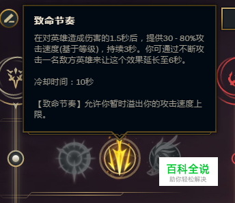 首先蛮王S8符文:主系符文带精密。 蛮王基石符文 带致命节奏,这个符文加很多的攻速,而且允许你的攻速超过2.5的上限。攻速对蛮王非常有用,这也是为什么蛮王一般都出攻速鞋,电刀这些攻速的原因。攻速可以增加普攻频率,快速积赞蛮王怒气,从而提高伤害。