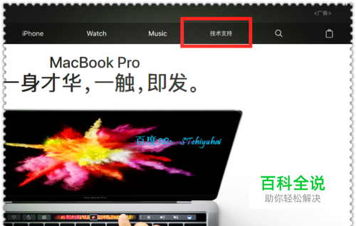 打开浏览器,找到Apple中国主页,登录主界面,在主界面右上角,点击“技术支持”。
