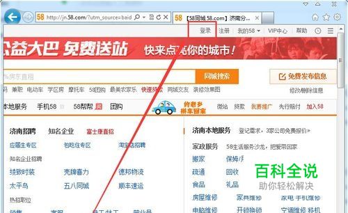 登录完成之后,返回58同城首页,点击右上角的免费发布信息