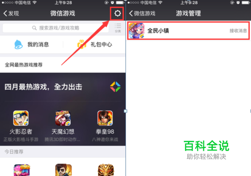 微信游戏页面里,选择右上角的小齿轮图标“游戏管理”,然后就可以查看微信授权过的应用信息了,比如下图显示的是,用微信登录过全民小镇游戏