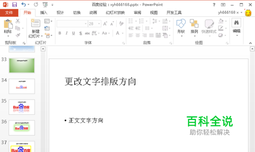如何修改幻灯片的文字排版方向,将排版方向改为竖向或者其它方向,下面小编就来教大家怎么设置