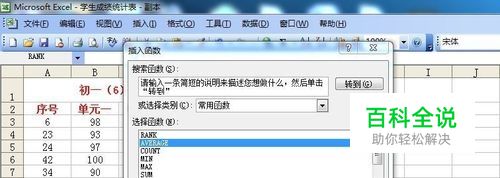 先把每个学生的平均分求出来。单击E3单元格,单击插入菜单,选择函数,在常用函数中找到求平均数的那个函数,AVERAGE,单击确定。