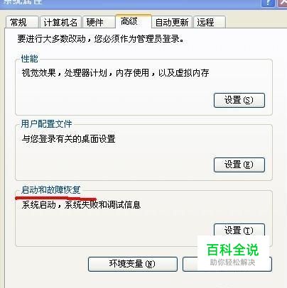 2点击“高级”按钮,选择“启动和故障恢复”,点击“设置”,“编辑”选项